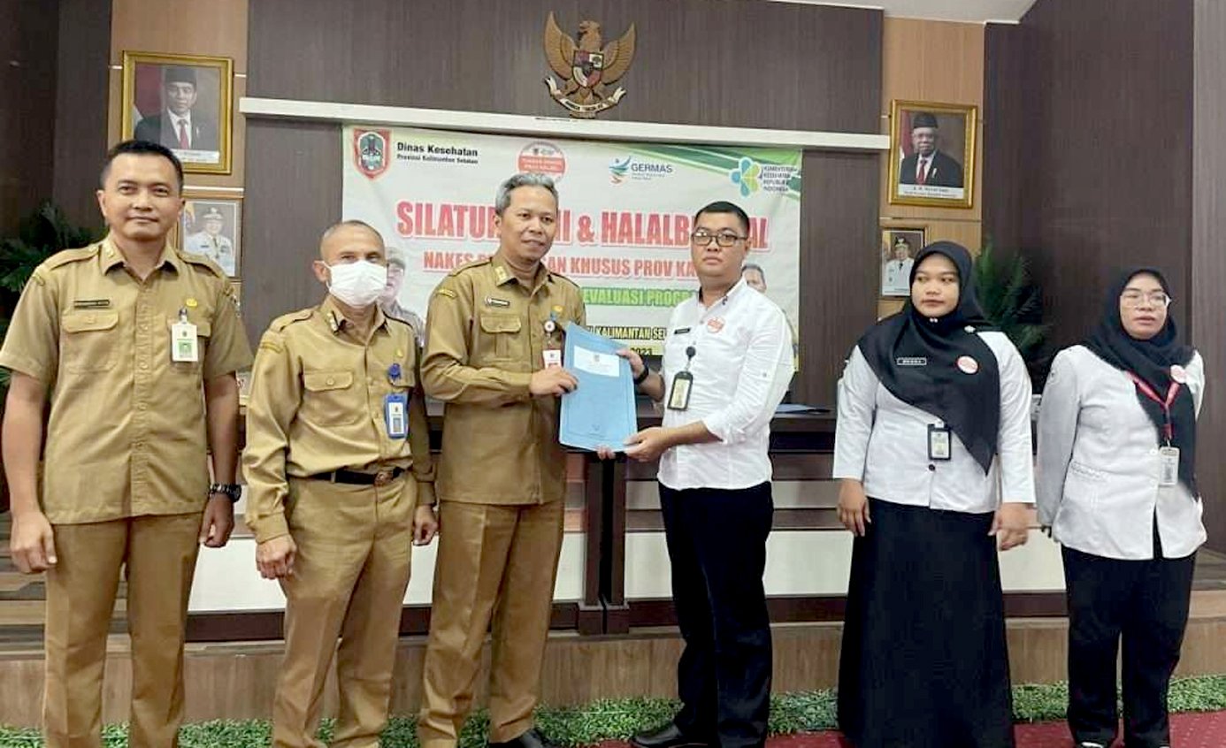 Penyerahan SK langsung dilakukan oleh Kepala Dinas Kesehatan Kalsel Diauddin didampingi Kepala Bidang Sumber Daya Kesehatan, Akhmad Yani dan Kepala Seksi SDMK, Muhammad Rizal.