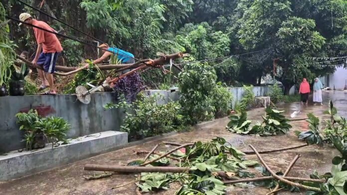 Sebuah pohon yang berada tak jauh dari pemukiman pun tumbang hingga nyaris menimpa rumah dibawahnya. Beruntung patahan pohon tidak sempat menimpa rumah hingga jatuhnya korban pun dapat dihindarkan.
