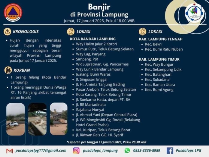 Laporan ini disusun berdasarkan data BPBD Provinsi Lampung pada Jumat, 17 Januari 2025, pukul 20.30 WIB.