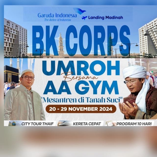 BK Corp menggandeng MQ Travel, biro perjalanan berpengalaman yang dikenal profesional dalam menyelenggarakan perjalanan umroh. Seluruh rangkaian perjalanan, mulai dari akomodasi hingga jadwal ibadah, dipersiapkan dengan matang untuk memastikan peserta dapat fokus beribadah dengan khusyuk.