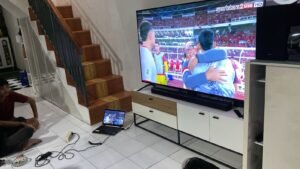 Dengan layar besar dan tata suara yang menggelegar, ruangan kantor berubah menjadi mini stadion. Para karyawan larut dalam ketegangan dan antusiasme sepanjang pertandingan. Sorakan dan tepuk tangan menggema setiap kali Timnas Indonesia menguasai bola atau menciptakan peluang.