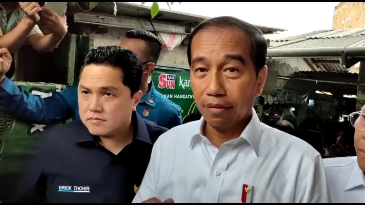 Kedatangan Jokowi di Pasar Pal, Kelurahan Tugu, Cimanggis ini didampingi Menteri BUMN Erick Tohir dan sejumlah pejabat lainnya, termasuk Utusan Khusus Presiden Bidang Kerja Sama Pengentasan Kemiskinan dan Ketahanan Pangan Muhamad Mardiono.