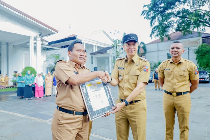 Penghargaan tersebut diserahkan dalam pelaksanaan apel pagi di Plaza Balai Kota Bogor, Senin (22/12/2025).