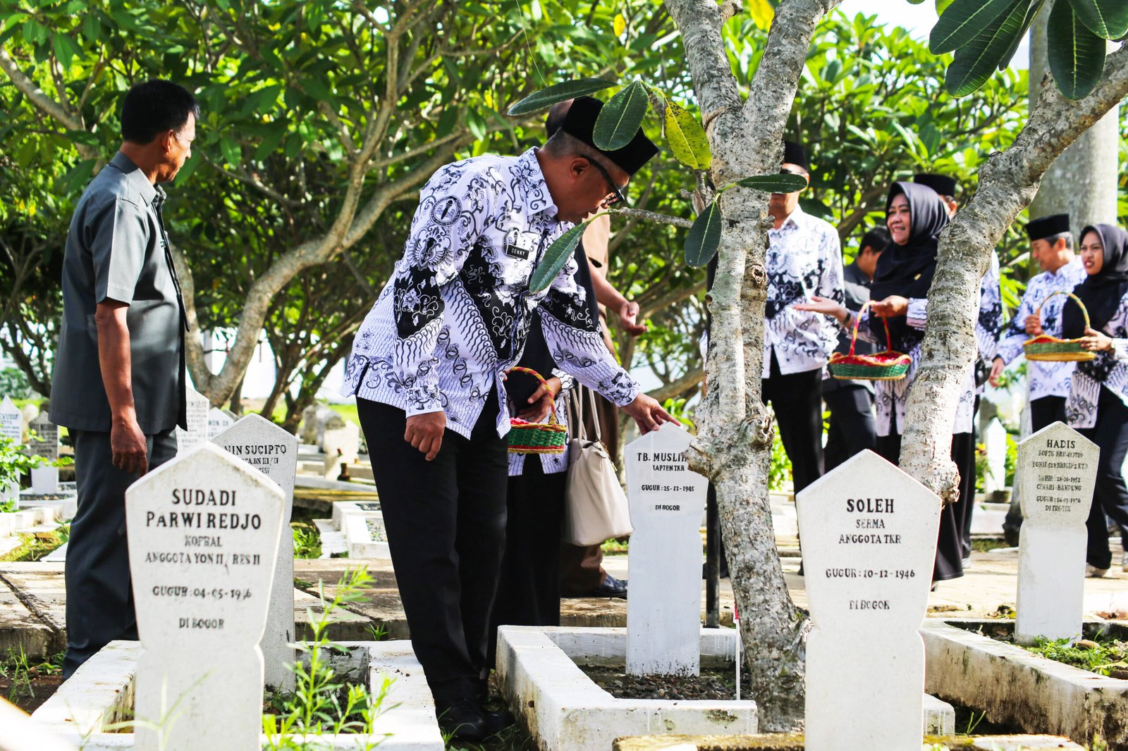 Ziarah makam pahlawan diawali upacara yang dipimpin Sekretaris Daerah (Sekda) Kota Bogor, Denny Mulyadi didampingi Kepala Dinas Pendidikan (Disdik) Kota Bogor, Herry Karnadi, Ketua PGRI Kota Bogor, Ade Sutisna serta jajaran pengurus dan para guru perwakilan sekolah se-Kota Bogor.