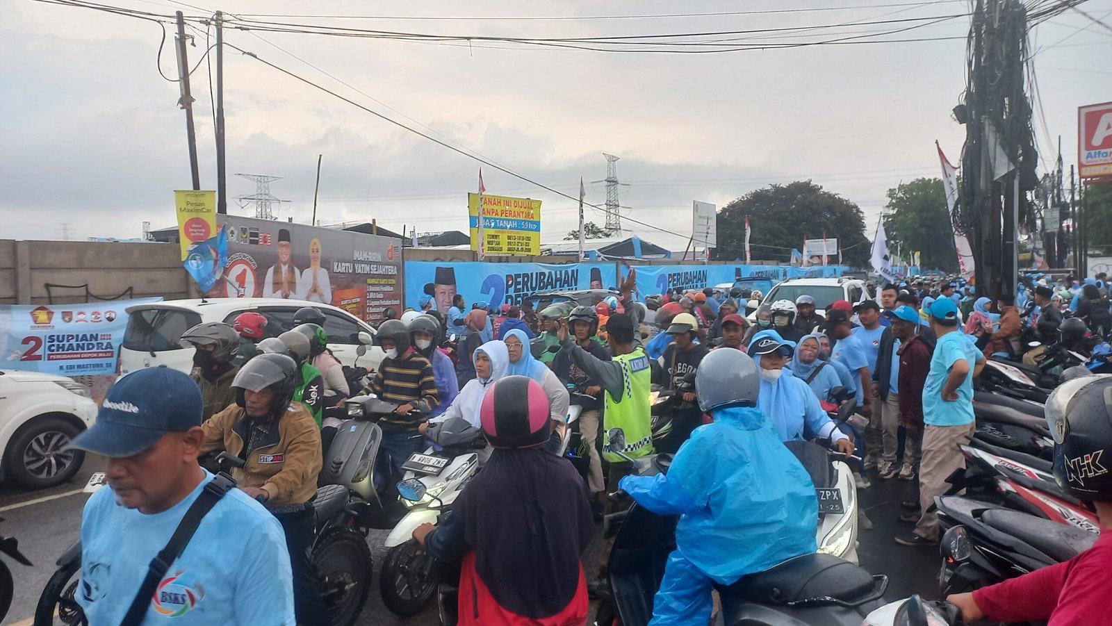 HARNAS.id,Depok-Usai mengikuti debat publik Kamis (21/11/2024) malam, pasangan Calon Wali Kota dan Wakil Wali Kota Depok, Supian Suri-Chandra Rahmansyah menghadiri kampnye akbar di Lapangan Kopelindo, Rangkapan Jaya, Pancoran Mas, Kota Depok, Jum’at (22/11/2024) petang. Kampanye dihadiri ribuan simpatisan Supian-Chandra hingga di lokasi tersebut terlihat padat oleh manusia dan kendaraan bermotor.