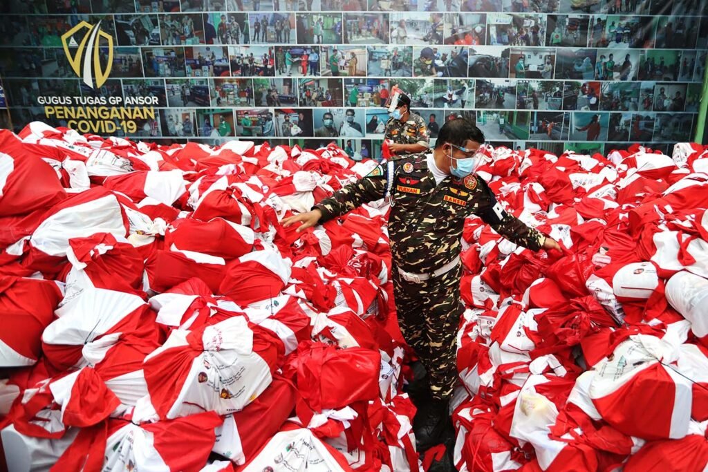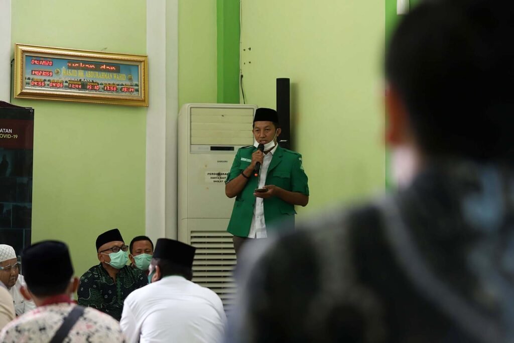 Wasekjen PP GP Ansor Addin Jauharudin menyampaikan paparan di sela pendistribusian sembako bantuan presiden (banpres) kepada 200 jaringan Majelis Taklim Habaib dan Kyai se-Jabodetabek, Jakarta, Jumat (4/12/2020). Pimpinan Pusat Majelis Dzikir dan Sholawat Rijalul Ansor (PP MDS RA) bersama Kementerian Sosial mendistribusikan 26.500 paket sembako bantuan presiden (banpres) yang ditujukan kepada 200 Majelis Ta’lim Habaib dan Kyai se-Jabodetabek. HARNAS.ID | BARRI FATHAILAHPP GP Ansor menata sembako bantuan presiden (banpres) untuk 200 jaringan Majelis Taklim Habaib dan Kyai se-Jabodetabek, Jakarta, Jumat (4/12/2020). Pimpinan Pusat Majelis Dzikir dan Sholawat Rijalul Ansor (PP MDS RA) bersama Kementerian Sosial mendistribusikan 26.500 paket sembako bantuan presiden (banpres) yang ditujukan kepada 200 Majelis Ta’lim Habaib dan Kyai se-Jabodetabek. HARNAS.ID | BARRI FATHAILAH