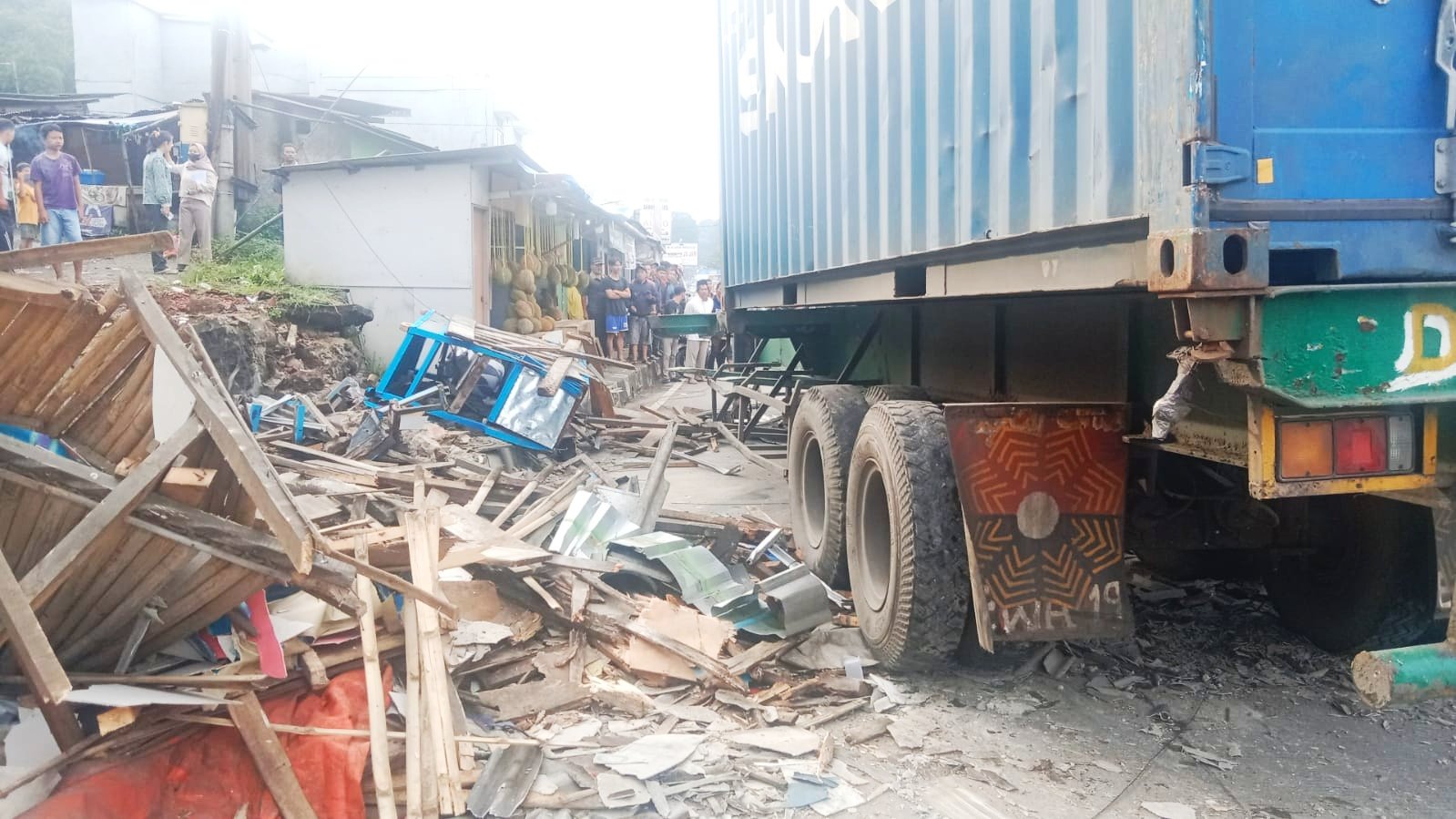 CIAWI, Harnas.id – Diduga tak kuat menanjak, sebuah truk kontainer menabrak dua warung milik warga di tepi Jalan Raya Mayjen HR Edi Sukma, tepatnya di Desa Teluk Pinang, Kecamatan Ciawi, Kabupaten Bogor, Rabu (07/12/22).