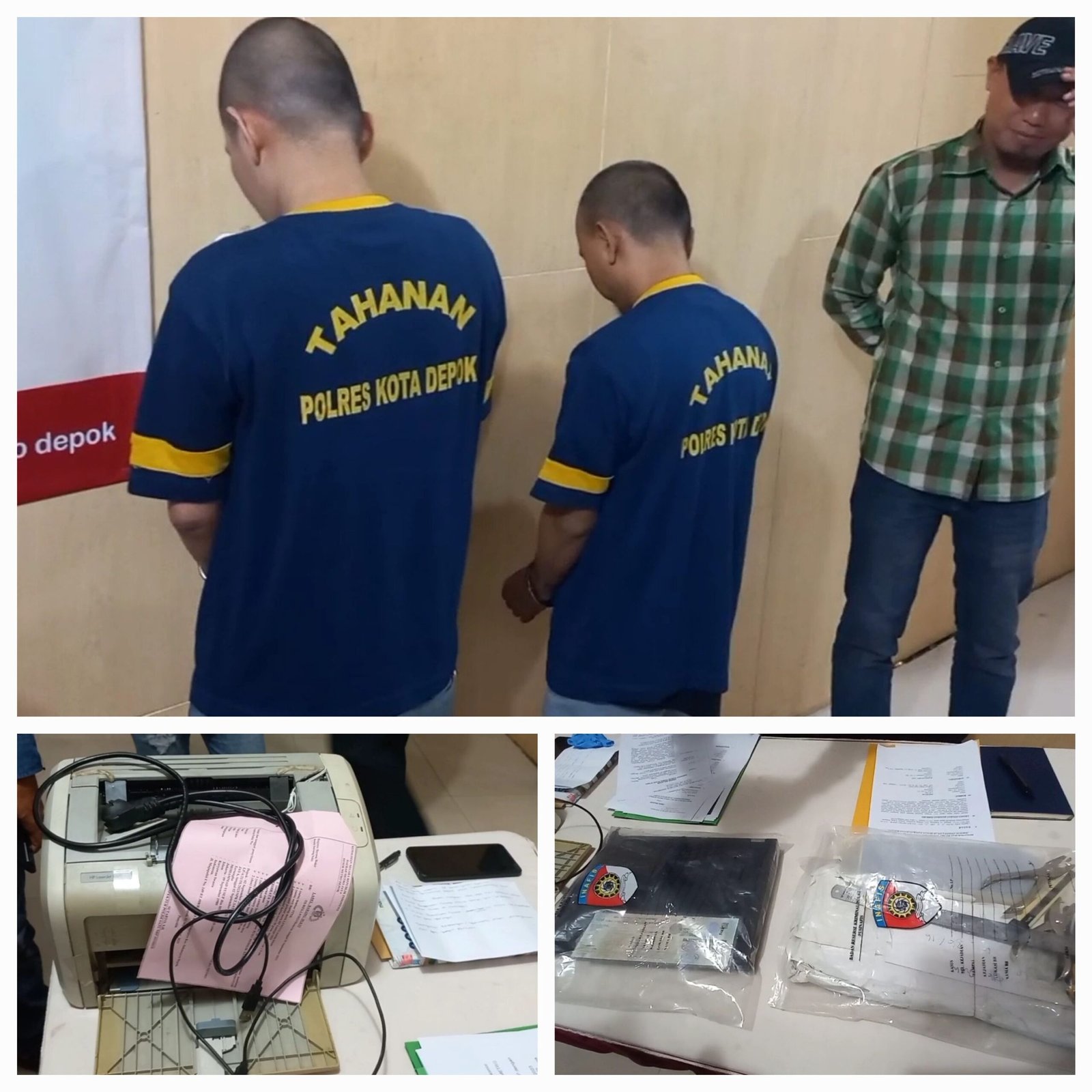 Akibat perbuatannya, para tersangka kini mendekam di ruang tahanan Mapolres Metro Depok. Kedua tersangka dikenakan Pasal 263 ayat 1 KUHP tentang pemalsuan dengan ancaman 6 tahun kurungan.