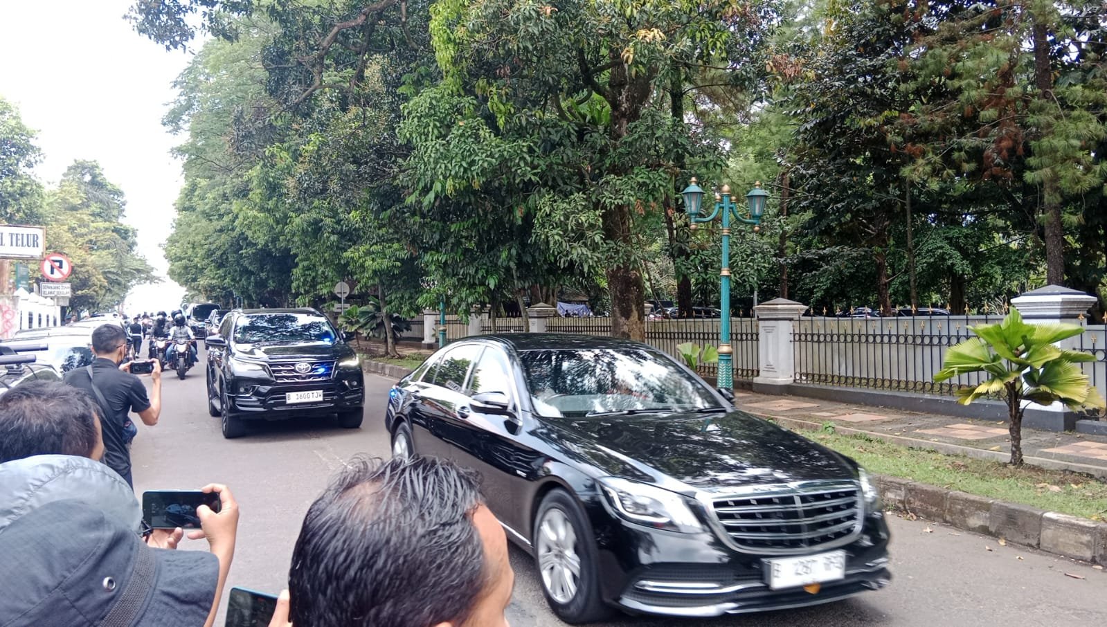 Dengan menggunakan mobil B 1287 RFS, presiden Jokowi tiba di Istana Batutulis sekitar pukul 12.55 WIB