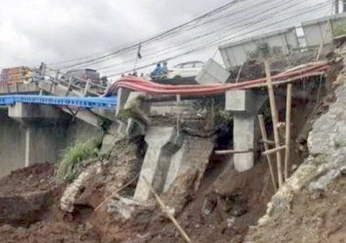 Selain itu, kendaraan berat yang melintas di jembatan menyebabkan tembok penahan jembatan sepanjang 15 meter dengan lebar 1 meter dan ketinggian 8 meter ambruk. (*)