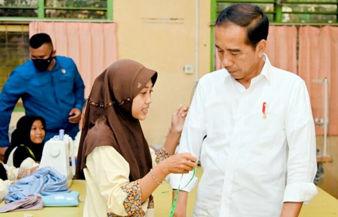 JAMBI, Harnas.id – Presiden RI Joko Widodo (Jokowi) meninjau kegiatan belajar mengajar di SMKN 4 Kota Jambi, Provinsi Jambi, pada Selasa (16/5/2023). Di sekolah tersebut, Presiden melihat aktivitas siswa dan siswi yang sedang mengikuti kegiatan pembelajaran.