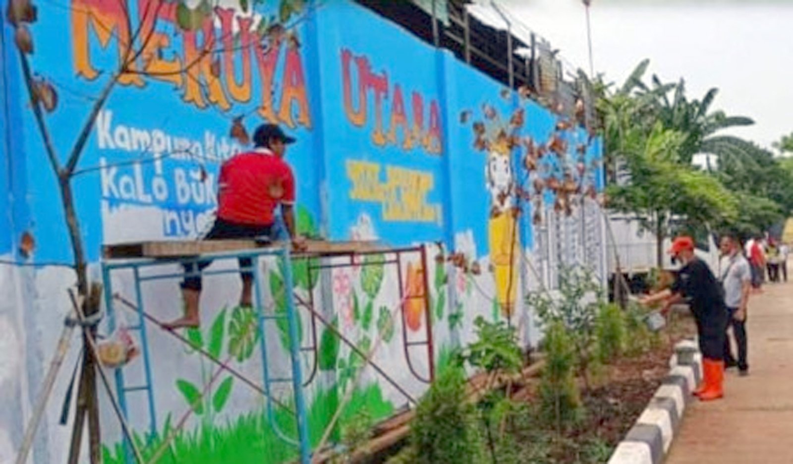 Suherman (32), warga RT 08/04, Lebak Bulus menyambut positif pembuatan mural dan penanaman beragam jenis tanaman yang dilakukan personel PPSU di lokasi.