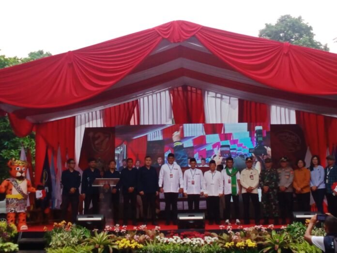 Harnas.id, Bogor – KPU Kabupaten Bogor mengelar kampanye damai kedua pasangan Calon Bupati Bogor Rudy Susmanto dan Cawabup Ade Ruhandi beserta pendukung timses relawan dari koalisi Partai Politik Cabup dan Cawabup Bogor padati halaman kantor KPU Kabupaten Bogor di jalan tegar beriman, Selasa, (24/09/2024).