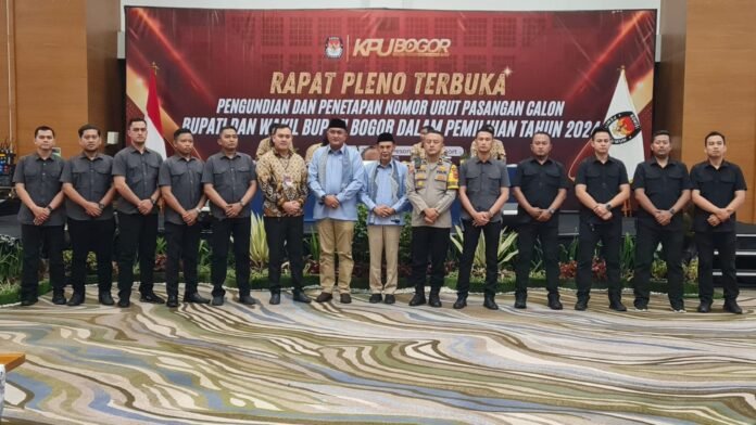 Harnas.id, Bogor – Komisi Pemilihan Umum (KPU) Kabupaten Bogor menggelar Rapat Pleno Terbuka Pengundian dan Penetapan Nomor Urut Pasangan Calon (Paslon) Bupati dan Wakil Bupati Bogor Tahun 2024 yang dilaksanakan di Hotel Pesona Alam Resort, Cisarua, Kabupaten Bogor – Jawa Barat. Senin, (23/09/2024).