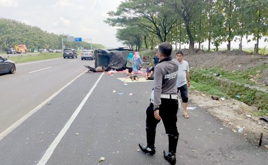 Ia tak mengetahui pasti mengapa minibus tersebut tiba-tiba oleng hingga terbalik di ruas tol Cipali.