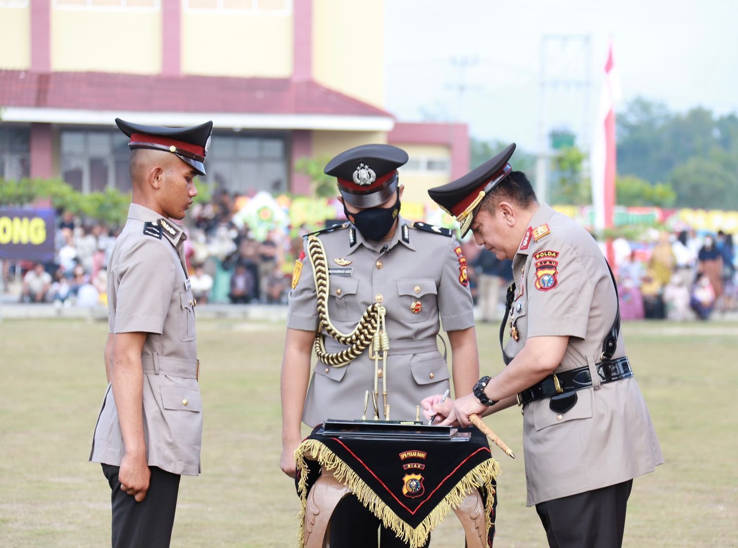 Kapolda Riau menyampaikan ucapan selamat kepada seluruh Bintara Polri yang baru dilantik. Ia mengaku juga ikut senang.