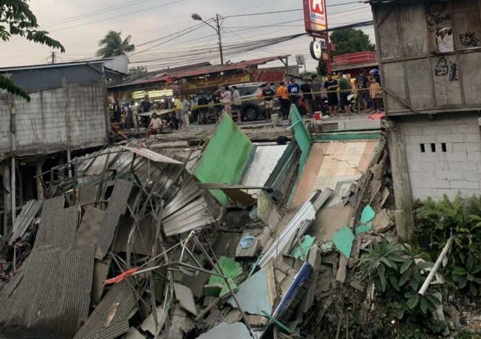 BOGOR,Harnas.id-Sejumlah Kios yang berada dibantaran Kalibaru Pabuaran, Bojong Gede, Kabupaten Bogor mengalami ambruk pada Kamis, (05/09/2024).