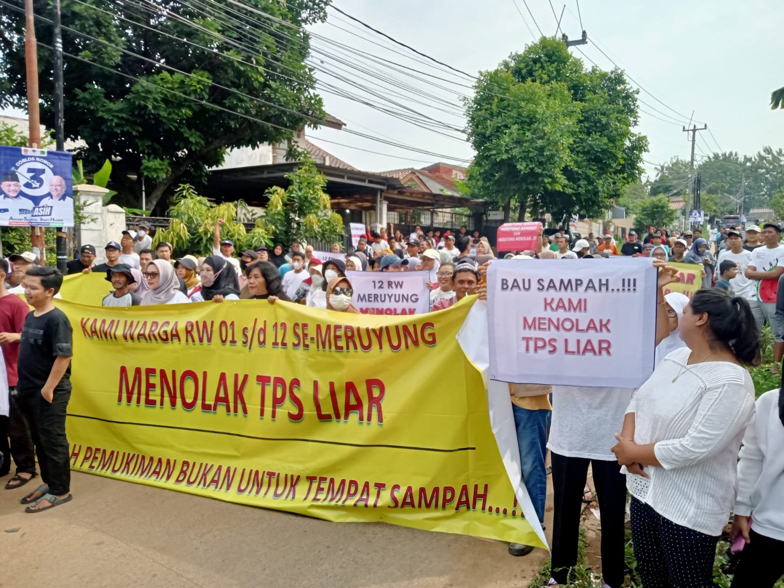 Aksi damai yang dilakukan warga, yakni menuntut TPS liar yang berlokasi di RT 01/10 Meruyung, agar segera ditutup oleh Pemerintah Kota Depok. Pasalnya, keberadaan TPS tersebut sangat mengganggu kenyamanan warga.