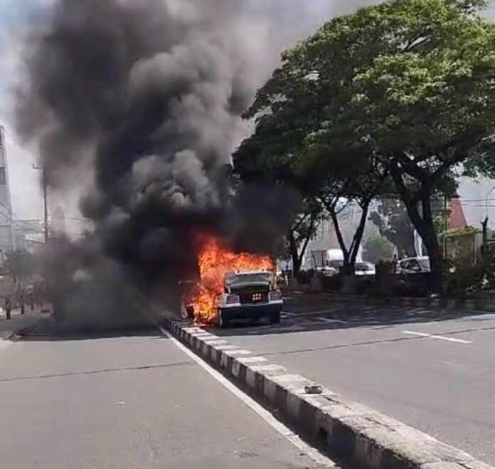 Harnas.id, Depok – Sebuah mobil klasik jenis sedan terbakar di Jalan Raya Margonda, Depok, pada Jumat siang. Diduga, api berasal dari korsleting listrik di bagian dashboard mobil. Tidak ada korban jiwa dalam peristiwa ini, namun kemacetan panjang hingga dua kilometer tidak terhindarkan.