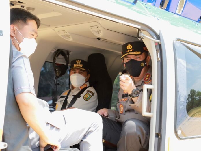 HARNAS.ID – Kapolda Riau Irjen Pol Mohammad Iqbal bersama sejumlah pejabat dari jajaran Forum Komunikasi Pimpinan Daerah (Forkopimda) melakukan peninjauan menggunakan helikopter ke pos terpadu di perbatasan Riau – Sumatera Utara (Sumut), di Bagan Sinembah, Kabupaten Rohil, Jumat (29/4/2022).