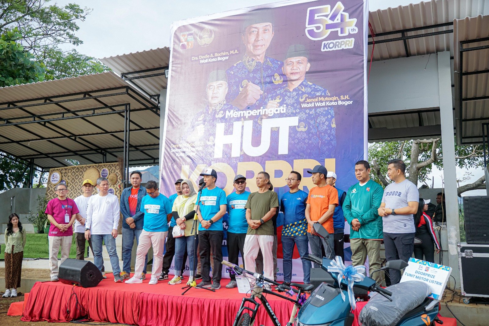 Harnas.id, BOGOR – Wali Kota Bogor, Dedie A. Rachim menghadiri rangkaian kegiatan HUT ke-54 Korpri yang diselenggarakan di Lapangan Genteng, Kecamatan Bogor Selatan, Sabtu (29/11/2025).