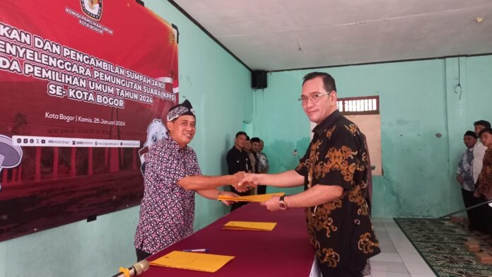 Harnas.id, Bogor – Panitia Pemungutan Suara (PPS) Kelurahan Pakuan melakukan pelantikan dan pengambilan sumpah janji KPPS pada pemilihan umum tahun 2024 se Kota Bogor kepada 105 orang anggota di Gedung Serbaguna RW 05, pada Kamis (25/01/2024) pagi.
