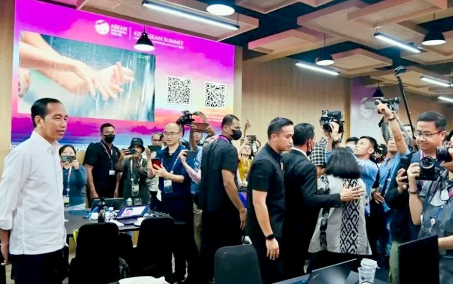 ‘Aksi’ Jokowi itu terjadi saat sang kepala negara meninjau langsung pusat media atau media center pada Selasa (9/5/2023). Setibanya di Hotel Bintang Flores sekitar pukul 13.20 WITA, Presiden Jokowi langsung menuju area lobi dan meja registrasi untuk para jurnalis yang meliput perhelatan KTT ke-42 ASEAN.
