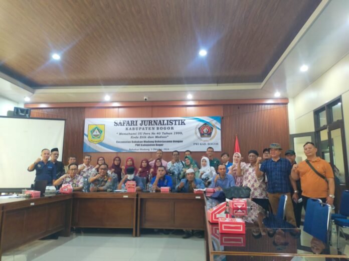 Harnas.id, Bogor – Pengurus Persatuan Wartawan Indonesia (PWI) Kabupaten Bogor, kembali melakoni program safari jurnalistik dalam memberikan pemahaman tentang Undang-Undang Pers, Kode Etik serta pemahaman dalam menggunakan media sosial (Medsos) dengan bijak, yang berlangsung di Aula Kantor Kecamatan Babakan Madang, lantai II, pada Kamis (03/10/2024)