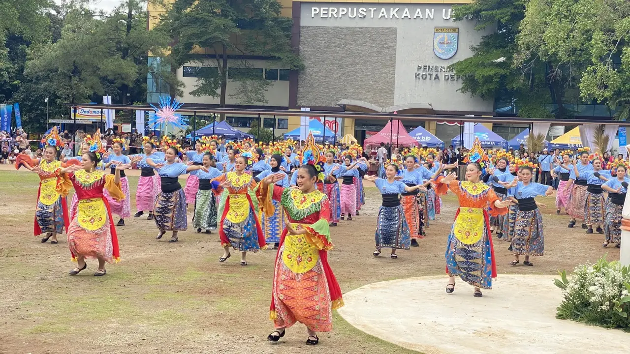 Ribuan penari menunjukan gerak tubuh yang berirama indah dan penuh dengan ekspresi ditampilkan sempurna di Depok Open Space (DOS) depan kantor Walikota Depok.