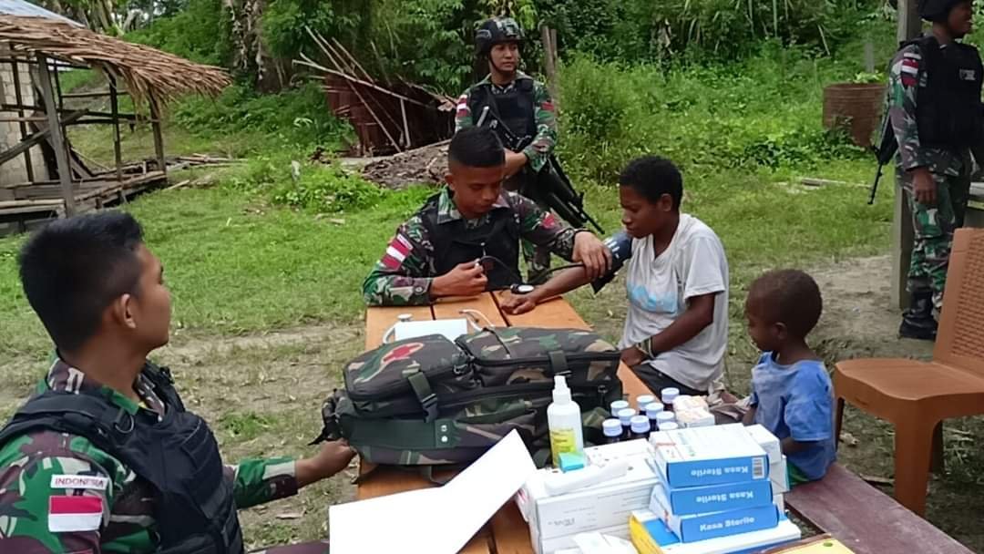 Papua, Harnas.id – Tim Kesehatan Satgas Pamtas Yonif 126/KC Pos Kalipay yang dipimpin Danpos Letda Ckm Sarmatua Sitorus memberikan pelayanan kesehatan gratis bagi masyarakat Kampung Kalilapar 2, Distrik Waris, Kabupaten Keerom.
