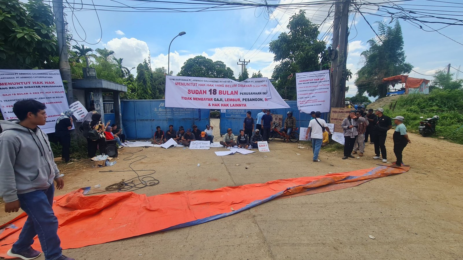 Harnas.id, Bogor – Puluhan pekerja PT Armindo Galvanizing Industry menggelar aksi demonstrasi di lokasi perusahaan, menuntut pembayaran gaji yang telah tertunda selama 18 bulan. Selain itu, pekerja juga memprotes penundaan pembayaran iuran BPJS yang sudah berlangsung hingga 22 bulan. Senin, (06/01/2025).