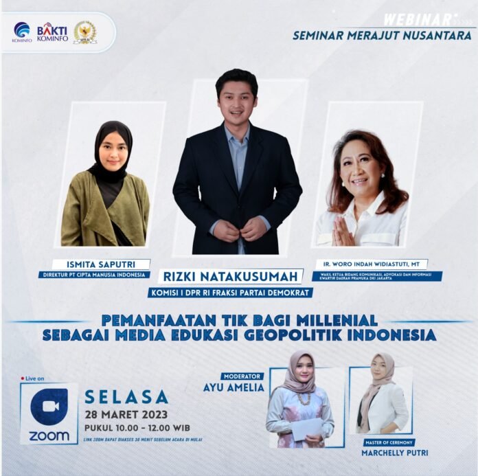 DEPOK, Harnas.id – Anggota komisi 1 DPR RI, Rizky Natakusumah menjadi pembicara di acara Seminar Merajut Nusantara. Acara tersebut diadakan di studio atlantis edutech, Depok, Jawa Barat, Selasa 28/03/2023.