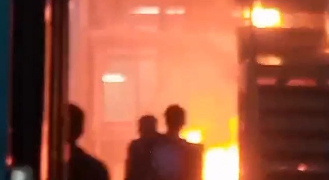 Dalam sebuah video yang beredar, tampak terlihat beberapa pekerja berjibaku untuk memadamkan kobaran Api tersebut.