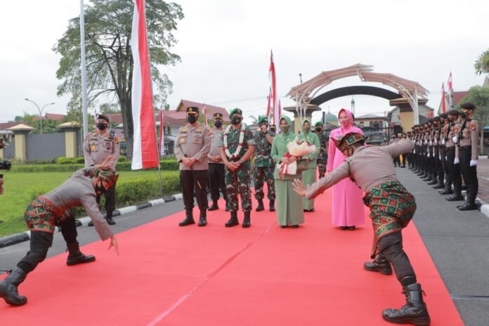 HARNAS.ID – Polda Riau menggelar upacara penerimaan dan pelepasan Komandan Komando Resort Militer (Danrem) 031/Wirabima, Senin (21/2/2022).