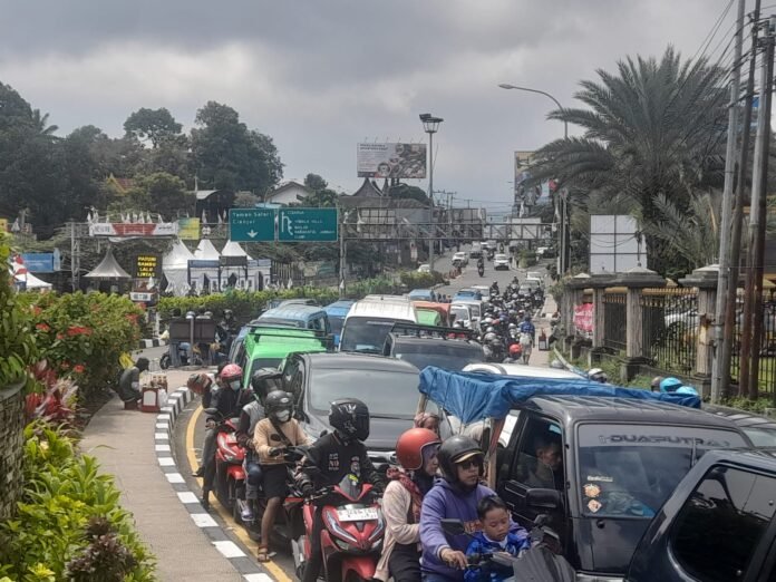 Kepadatan kendaraan disebabkan oleh banyaknya masyarakat yang hendak menuju kawasan wisata puncak dan di barengi arus balik mudik lebaran yang melintas di kawasan puncak