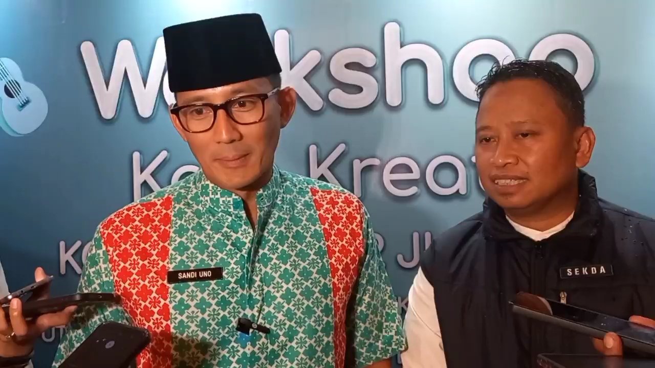 DEPOK,Harnas.id-<span;>Menteri Pariwisata dan Ekonomi Kreatif, Sandiaga Salahudin Uno menghadiri workshop peningkatan inovasi dan kewirausahaan kabupaten/kota kreatif di Kota Depok, Sabtu (22/07/2023).