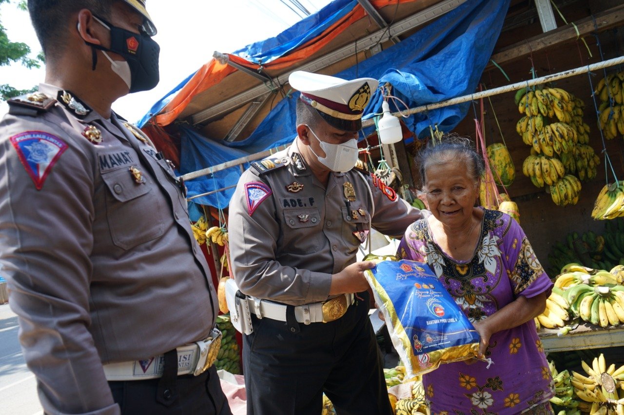 HARNAS.ID – Jajaran Ditlantas Polda Sulsel meluncurkan program Gerakan Peduli pedagang kaki lima (PKL), Kamis (29/7/2021). Kegiatan dilakukan dengan membeli dagangan PKL dengan harga 10 kali lipat dan kemudian memberikan sembako.