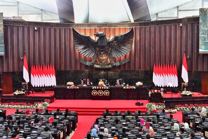 Harnas.id, Jakarta -Presiden Joko Widodo menyampaikan pidatonya pada Sidang Tahunan MPR RI dan Sidang Bersama DPR RI dan DPD RI di Gedung Nusantara, Jakarta, pada Jumat, 16 Agustus 2024 dalam rangka peringatan Hari Ulang Tahun ke-79 Kemerdekaan Republik Indonesia. Dalam pidatonya, Jokowi menggarisbawahi capaian pembangunan yang telah diraih selama 10 tahun terakhir serta visi ke depan untuk Indonesia yang lebih sejahtera dan merata.