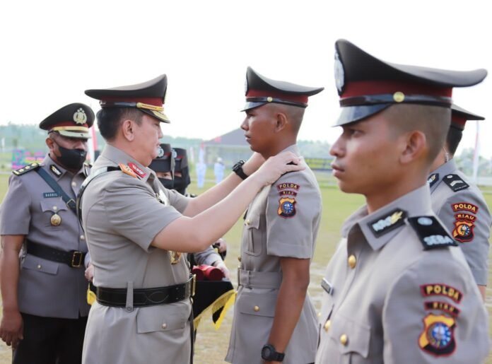 Kapolda Riau menyampaikan ucapan selamat kepada seluruh Bintara Polri yang baru dilantik. Ia mengaku juga ikut senang.