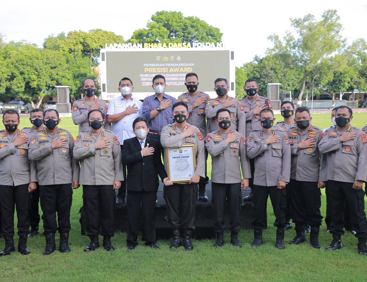 Penghargaan itu diserahkan langsung oleh Direktur Eksekutif Lembaga Kajian Strategis Kepolisian Indonesia (LEMKAPI) Dr Edi Saputra Hasibuan SH MH kepada Irjen Pol Mohammad Iqbal SIK MH di Tribun Lumbung, Lapangan Bhara Daksa Polda NTB, Selasa (21/12/2021).
