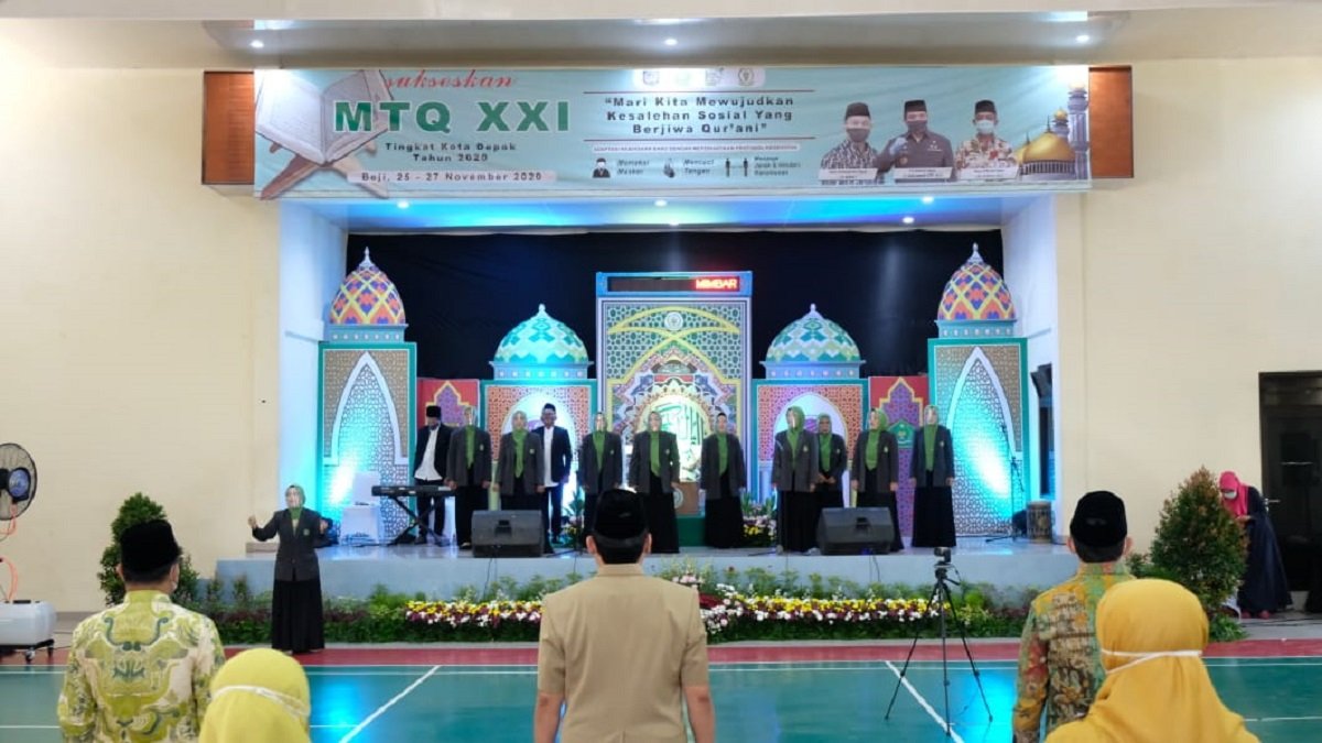 HARNAS.ID – Pandemi COVID-19 tak menyurutkan penyelenggaraan Musabaqah Tilawatil Qur’an (MTQ) Kota Depok Ke-21. Penerapan protokol kesehatan (prokes) menjadi aspek utama yang dikedepankan selama berlangsungnya seluruh rangkaian acara.