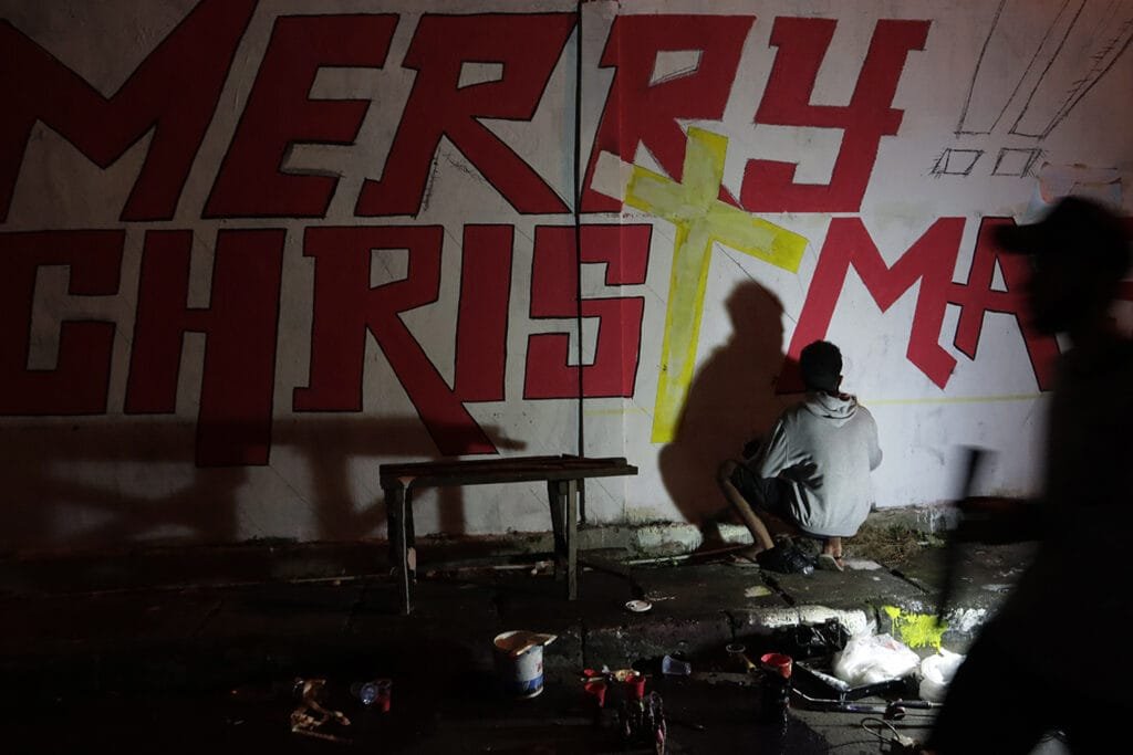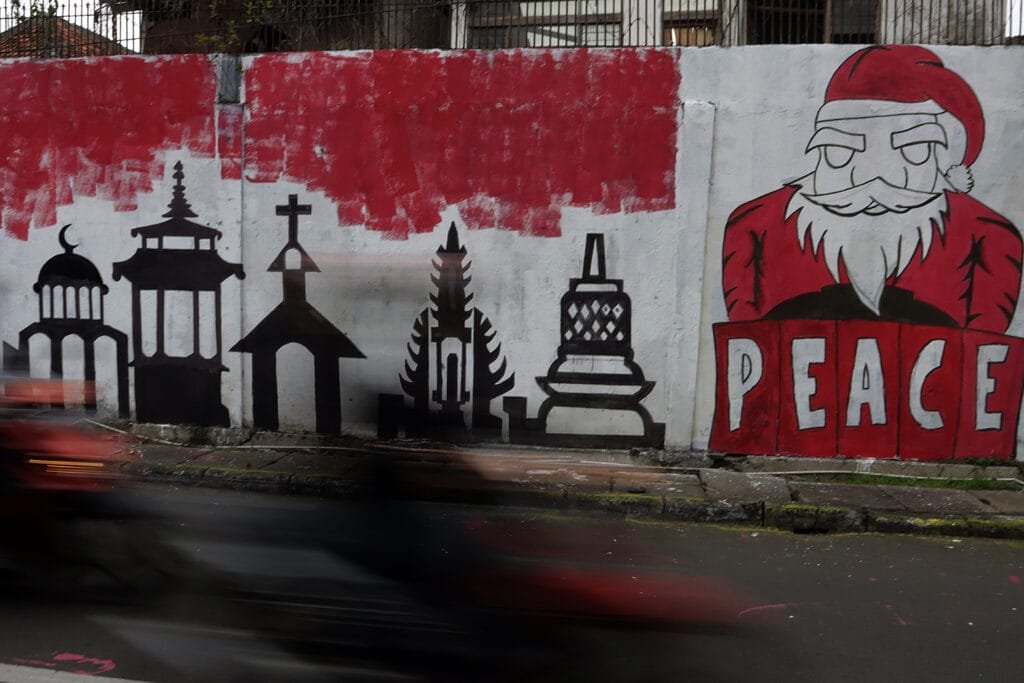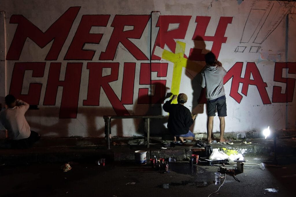 Remaja menyelesaikan pembuatan mural bertemakan Natal, dengan latar tulisan “Merry Christmas” di Jalan Pemuda, Depok, Jawa Barat, Kamis (24/12/2020) dini hari. Kreasi mural yang dibuat oleh anak-anak muda generasi dari keturunan Belanda-Depok ini, untuk menyambut Hari Raya Natal 25 Desember 2020. HARNAS.ID | BARRI FATHAILAHSejumlah remaja menyelesaikan pembuatan mural bertemakan Natal, dengan latar tulisan “Merry Christmas” di Jalan Pemuda, Depok, Jawa Barat, Kamis (24/12/2020) dini hari. Kreasi mural yang dibuat oleh anak-anak muda generasi dari keturunan Belanda-Depok ini, untuk menyambut Hari Raya Natal 25 Desember 2020. HARNAS.ID | BARRI FATHAILAHWarga melintas di depan mural bertemakan Natal, dengan latar tulisan “Merry Christmas” di Jalan Pemuda, Depok, Jawa Barat, Kamis (24/12/2020). Kreasi mural yang dibuat oleh anak-anak muda generasi dari keturunan Belanda-Depok ini, untuk menyambut Hari Raya Natal 25 Desember 2020. HARNAS.ID | BARRI FATHAILAHPengendara melintas di depan mural bertemakan Natal, dengan latar tempat-tempat ibadah yang ada di Indonesia di Jalan Pemuda, Depok, Jawa Barat, Kamis (24/12/2020). Kreasi mural yang dibuat oleh anak-anak muda generasi dari keturunan Belanda-Depok ini, untuk menyambut Hari Raya Natal 25 Desember 2020, sekaligus menjungjung tinggi toleransi umat beragama. HARNAS.ID | BARRI FATHAILAH