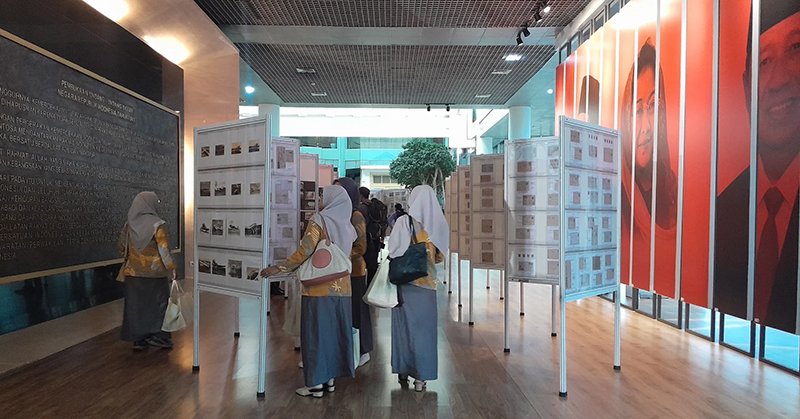 Sejumlah pengunjung mengamati koleksi kartu pos di Museum Kepresidenan RI Balai Kirti, Kamis (13/3/25). (Sumber gambar: Hypeabis.id/Prasetyo Agung Ginanjar)