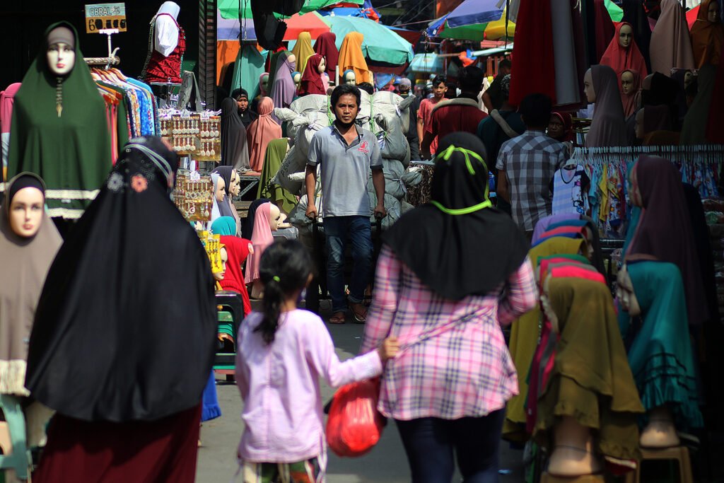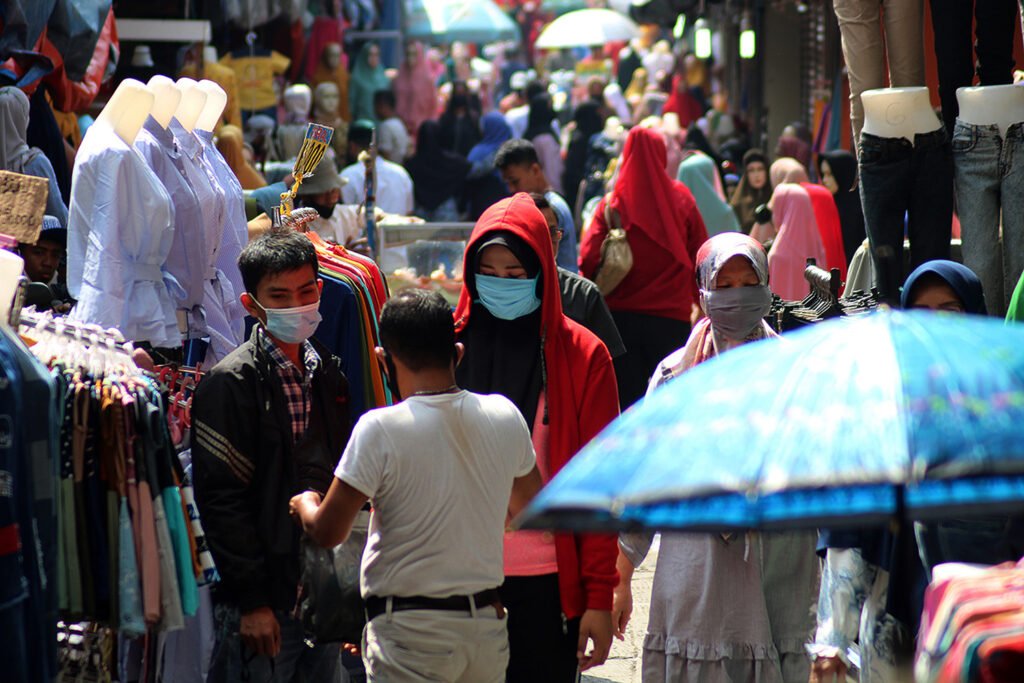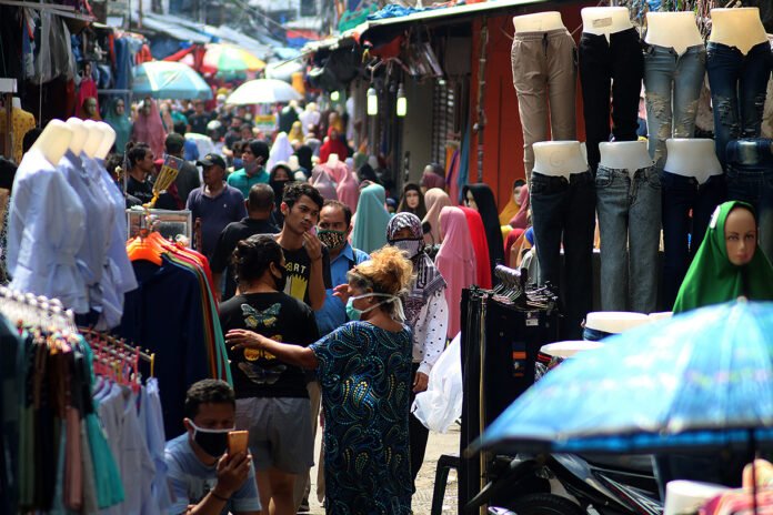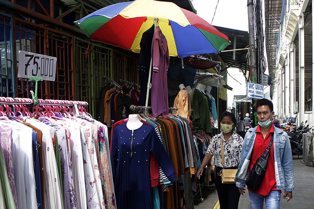 Pengunjung pasar memilih pakaian di Jalan Jati Baru Raya, Tanah Abang, Jakarta, Kamis (17/12/2020). Gubernur DKI Jakarta Anies Baswedan menerbitkan Instruksi Gubernur Nomor 64 Tahun 2020 tentang Pelaksanaan Pengendalian serta Seruan Gubernur Nomor 17 Tahun 2020 tentang Pengendalian Kegiatan Masyarakat untuk mencegah terjadinya klaster COVID-19 setelah libur Natal dan Tahun Baru 2021. Aturan ini diberlakukan mulai, Jumat (18/12/2020)-(8/1/2021). HARNAS.ID | BARRI FATHAILAH Warga melintas di depan lapak pedagang pakaian di Jalan Jati Baru Raya, Tanah Abang, Jakarta, Kamis (17/12/2020). Gubernur DKI Jakarta Anies Baswedan menerbitkan Instruksi Gubernur Nomor 64 Tahun 2020 tentang Pelaksanaan Pengendalian serta Seruan Gubernur Nomor 17 Tahun 2020 tentang Pengendalian Kegiatan Masyarakat untuk mencegah terjadinya klaster COVID-19 setelah libur Natal dan Tahun Baru 2021. Aturan ini diberlakukan mulai, Jumat (18/12/2020)-(8/1/2021). HARNAS.ID | BARRI FATHAILAHAktivitas pengunjung dan pedagang pasar di Jalan Jati Baru Raya, Tanah Abang, Jakarta, Kamis (17/12/2020). Gubernur DKI Jakarta Anies Baswedan menerbitkan Instruksi Gubernur Nomor 64 Tahun 2020 tentang Pelaksanaan Pengendalian serta Seruan Gubernur Nomor 17 Tahun 2020 tentang Pengendalian Kegiatan Masyarakat untuk mencegah terjadinya klaster COVID-19 setelah libur Natal dan Tahun Baru 2021. Aturan ini diberlakukan mulai, Jumat (18/12/2020)-(8/1/2021). HARNAS.ID | BARRI FATHAILAHPedagang pasar mengangkut karung berisi pakaian di Jalan Jati Baru Raya, Tanah Abang, Jakarta, Kamis (17/12/2020). Gubernur DKI Jakarta Anies Baswedan menerbitkan Instruksi Gubernur Nomor 64 Tahun 2020 tentang Pelaksanaan Pengendalian serta Seruan Gubernur Nomor 17 Tahun 2020 tentang Pengendalian Kegiatan Masyarakat untuk mencegah terjadinya klaster COVID-19 setelah libur Natal dan Tahun Baru 2021. Aturan ini diberlakukan mulai, Jumat (18/12/2020)-(8/1/2021). HARNAS.ID | BARRI FATHAILAH
