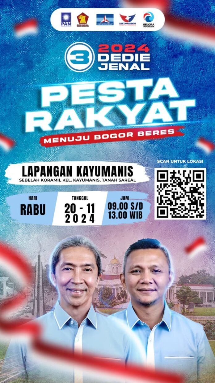 “Pesta Rakyat Menuju Bogor Beres adalah wujud dari komitmen kami untuk mendekatkan diri kepada masyarakat, sembari menghibur mereka. Kami ingin Bogor menjadi lebih baik, lebih tertib, dan lebih beres, serta terus menciptakan kesejahteraan untuk seluruh warga,” ujar salah satu perwakilan tim pemenangan Dedie-Jenal.
