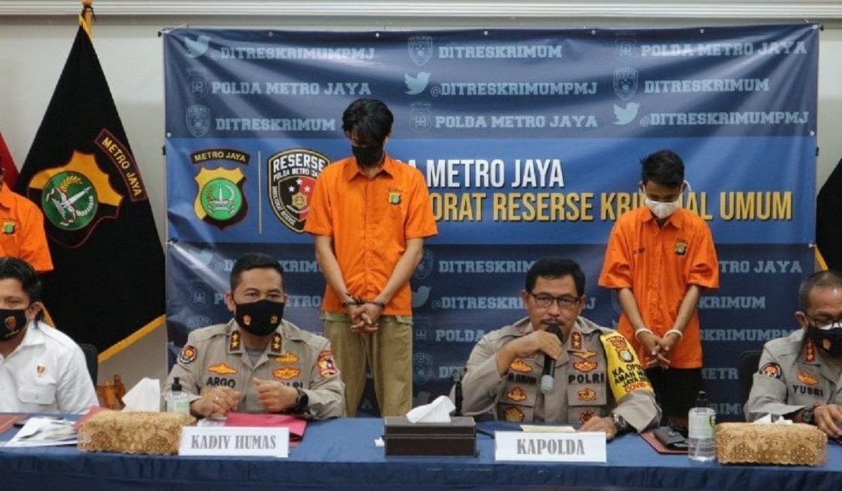 Kapolda Metro Jaya Irjen Pol Nana Sudjana (kedua kanan), Kadiv Humas Polri Irjen Pol Argo Yuwono (kedua kiri), dan Kabid Humas Polda Metro Jaya Kombes Pol Yusri Yunus (kanan) dalam konferensi terkait penetapan tersangka kericuhan unjuk rasa tolak Omnibus Law UU Cipta Kerja di Polda Metro Jaya, Senin (12/10/2020). ANTARA | FIANDA SJOFJAN RASSAT