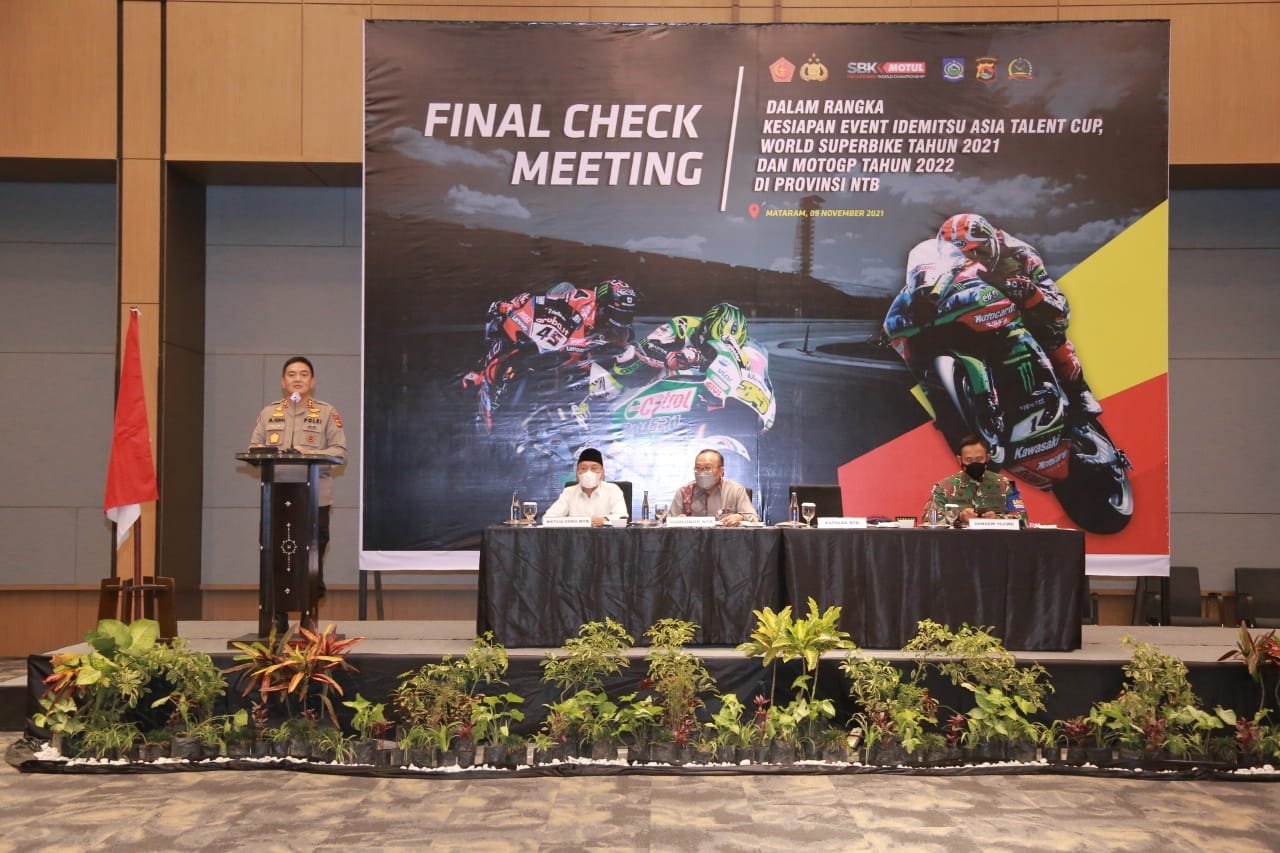 Dalam acara ini, Gubernur NTB Zulkieflimansyah membuka rapat Final Check Meeting” perhelatan IATC 2021, WorldSBK 2021, dan MotoGP 2022.