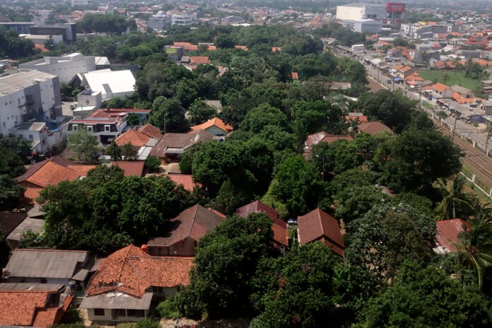 Keberadaan ruang terbuka hijau (RTH) di antara pemukiman warga di kawasan Beji, Depok, Jawa Barat, Rabu (18/11/2020). Ruang terbuka hijau di Kota Depok sangat diperlukan untuk menjaga ketersediaan lahan serta keseimbangan ekosistem perkotaan. Dinas Lingkungan Hidup dan Kebersihan (DLHK) Pemerintah Kota Depok menargetkan pembangunan 10 taman setiap tahunnya. Pada 2021, diharapkan dapat terbangun 148 taman di seluruh penjuru Kota Depok. HARNAS.ID | BARRI FATHAILAH
