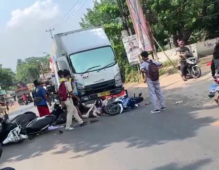 Berdasarkan video yang beredar, tampak terlihat sebanyak 6 pelajar mengalami luka luka akibat tertabrak oleh sebuah mobil truck.
