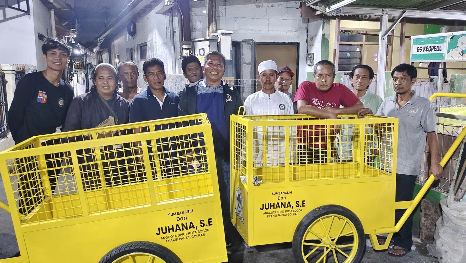 Harnas.id – Anggota DPRD Kota Bogor dari Fraksi Golkar, Juhana, menyalurkan dua unit gerobak sampah untuk warga RW 11, Kelurahan Bantarjati, Kecamatan Bogor Utara, Minggu (5/1/2025). Hal tersebut ia lakukan sebagai bentuk ajakan kepada warga agar menjaga kebersihan lingkungan.